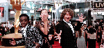Caleb McLaughlin, Millie Bobby Brown and Gaten Matarazzo pose for the glambot at the Emmys (September 18th, 2016)